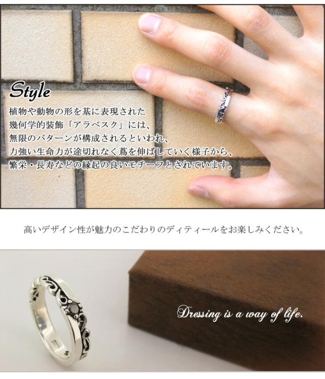 ブラックジルコニア・ハーフアラベスク 唐草シルバーリング 7〜23号 シルバー925 シルバーリング メンズ シルバー 指輪 大きいサイズ