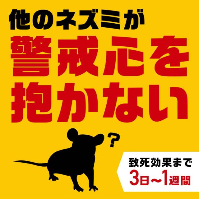・本品は遅効性で数日かけて徐々に効くので、他のネズミに警戒心を抱かせません。ネズミ対策(鼠対策)におすすめ。ネズミがいなくなる快適な環境づくりに。