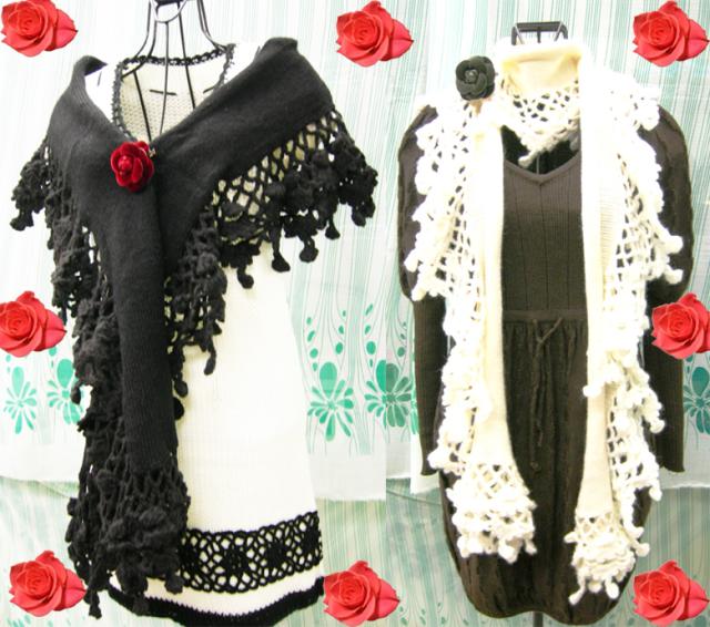 レースマフラーゴスロリから♪ブラックor ホワイトのかぎ編みストール・マフ・ショール・ひざ掛け