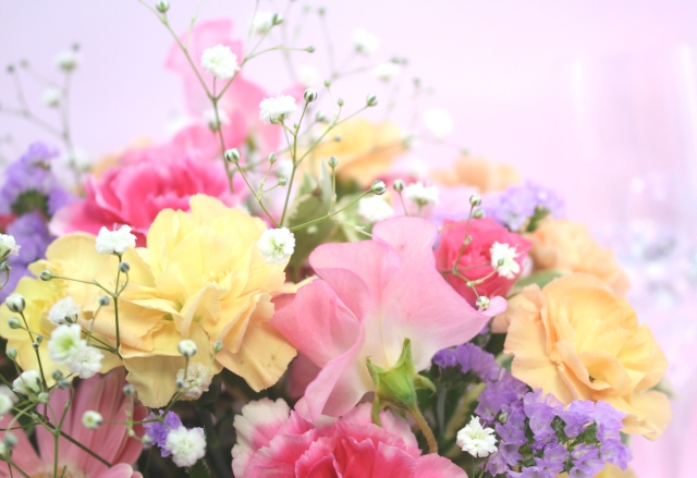 1月の誕生花!スイートピーと季節のお花でカラフルにアレンジしました