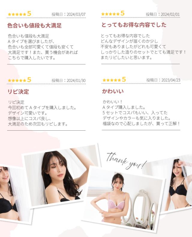 人気No.1アイテムのおまかせブラジャー&ショーツ5セット入り超お得福袋!