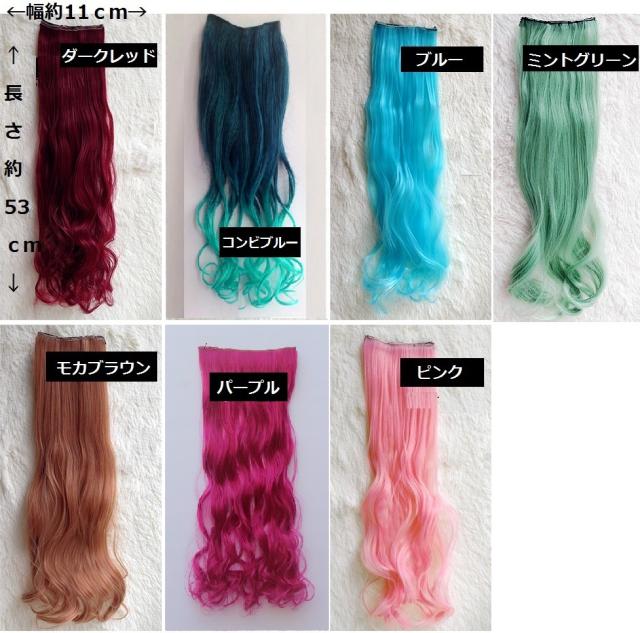 メール便無料 カラー エクステ ワンタッチ クリップ ロングカール 襟足ウィッグ つけ毛 メッシュ コスプレ ダンスヘア ピンク ブルー 赤 グラデーション インナーカラー 即日発送 エクステンション