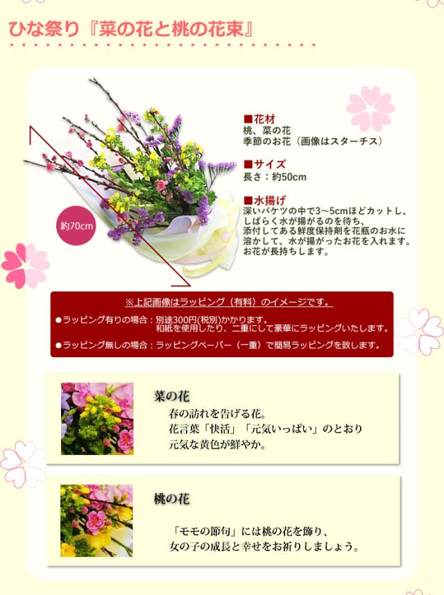 ひなまつり特集 菜の花と桃の花束 翌日配送 桃の節句 花 花束 ブーケ プレゼント ギフト 贈り物 フラワーギフト 誕生日 結婚記念日 お見舞い お祝い 記念 お礼 お返し 結婚 出産 退職 就職 卒園 入園 卒業 入学 ひなまつり ひな祭り ホワイトデー