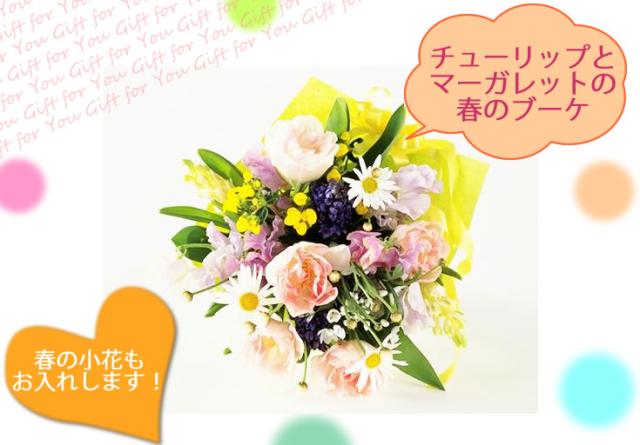 スプリングギフト チューリップとマーガレットの春のブーケ 翌日配送 花 生花 花束 ブーケ プレゼント ギフト 贈り物 フラワーギフト 誕生日 お見舞い お祝い 記念 お礼 退院 開店 退職 就職 卒園 入園 卒業 入学 父の日