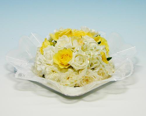 ■花材:白バラ、黄バラ、スプレーマム、季節の小花(お花は季節により多少変わります)