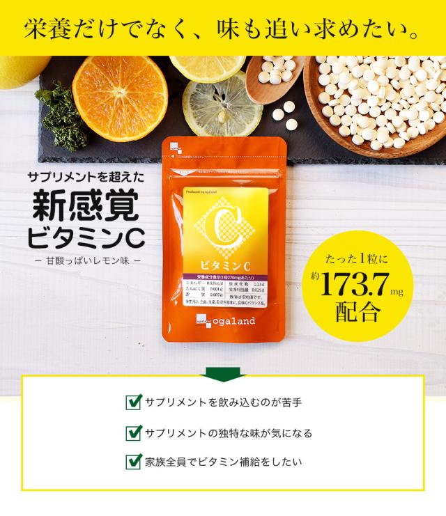 食べる ビタミンC(約3ヶ月分) サプリメント 健康食品 美容 健康 アスコルビン酸 美味しい レモン味 タブレット サプリ 健康 美容 生活 チュアブル お菓子 コラーゲン 水溶性 ビタミン 補給 オーガランド _JB _JH _3K ポイント消化 20012