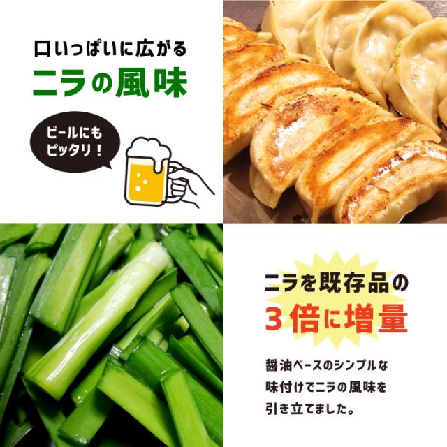 - ちょっと前にニンニクのジャンボ餃子がありましたが購入しそこねたので、今回購入しました。ニラ餃子でしたか、ニンニク餃子と比べても遜色なく、ジャンボだったので食べ応えもあって満足です。今度は是非ニンニクも...