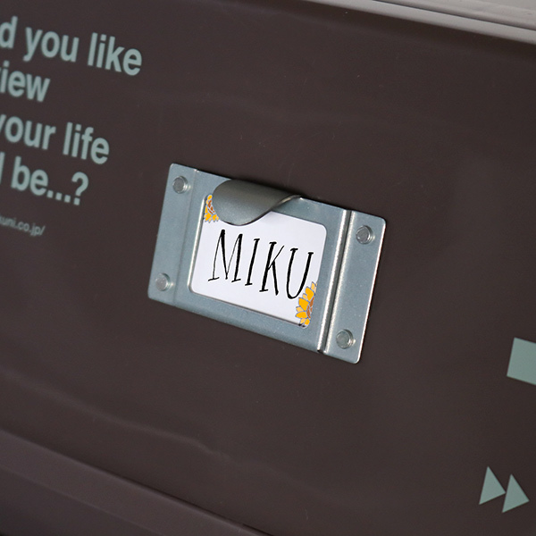取っ手部分にネームタグが付いているので、どこに何が収納されているかが一目で分かり、迷わず取り出すことができて便利です。