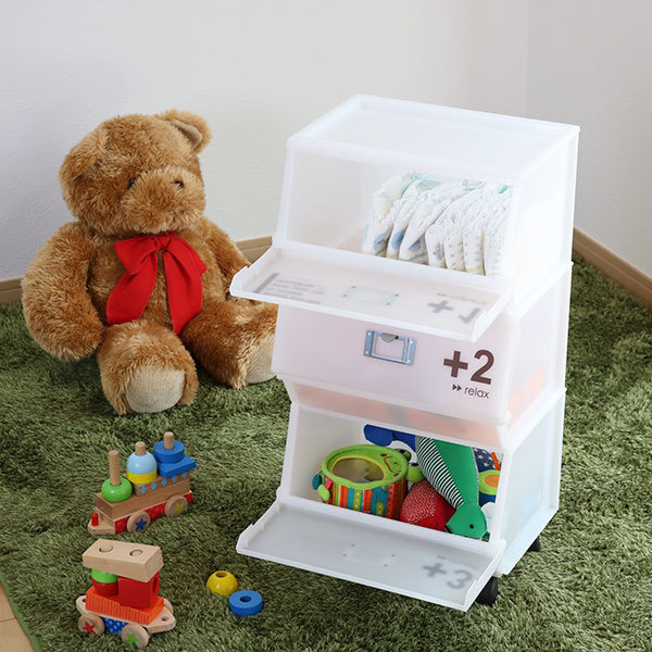 ベビー用品やこども服、おもちゃなど子供用品の収納にもピッタリです。片手でサッと取り出せるので、おむつ等の消耗品の収納にもおすすめです。大きくフタが開くので小さいお子様でも出し入れがしやすく、お片付けの習慣が身に付きやすいです。