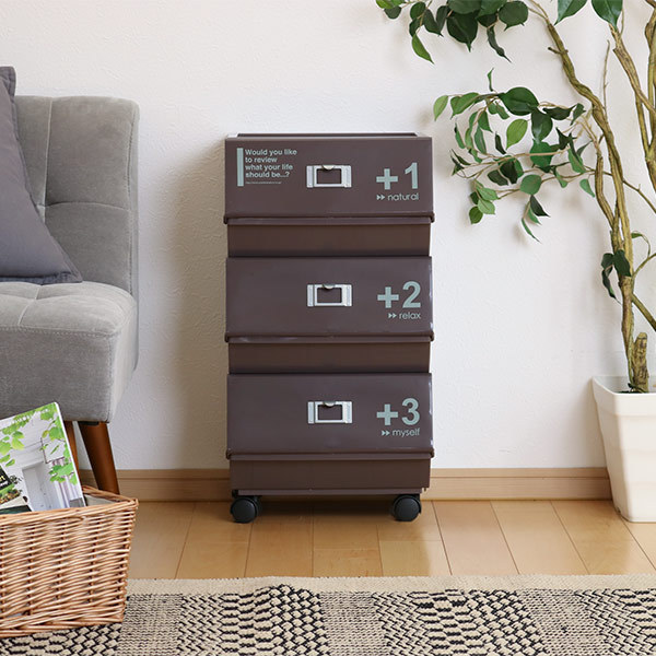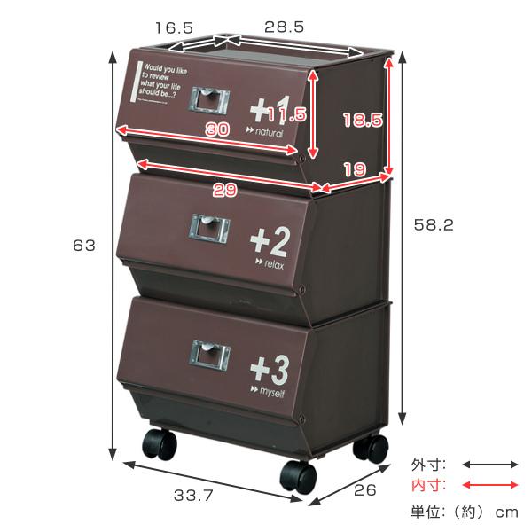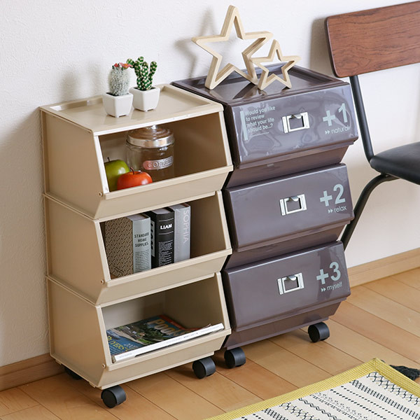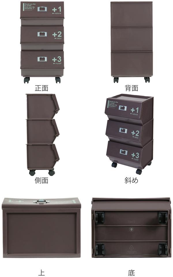 ラック 3段 プラスチック 幅33.7×奥行26×高さ63cm キャスター付き 収納ボックス ブラウン ( カフェスタイル 前開き 収納 フラップボックス ストッカー 収納ケース キッチンストッカー キッチン収納 日本製 おしゃれ )