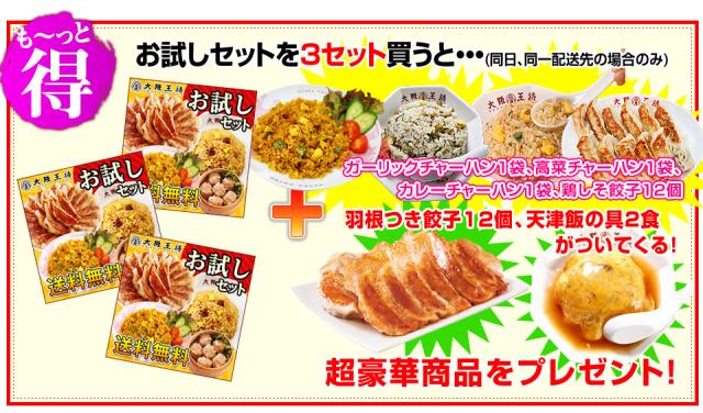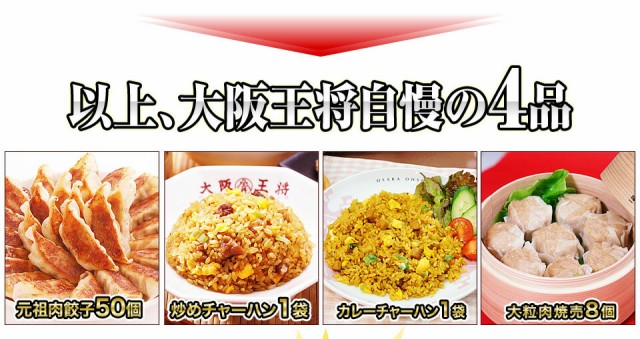 何回ご注文頂いてもOK!大阪王将 お試しセットVer.8[餃子 炒飯 カレーチャーハン 大粒焼売] 冷凍食品 送料無料 お弁当 おかず 惣菜 冷凍餃子 ギフト 福袋 仕送り