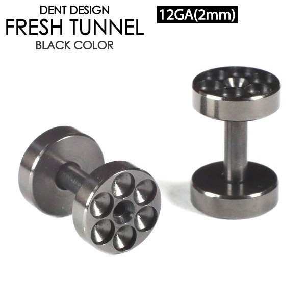 【メール便対応】フレッシュトンネル ブラック 凹仕様 12G(2mm) サージカルステンレス316L BLACK 黒色 デザイン ボディーピアス アイレット イヤーレット イヤーロブ 12ゲージ┃