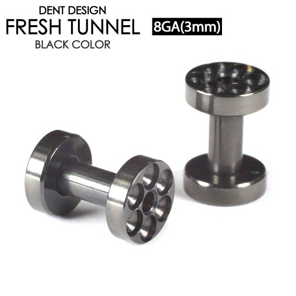 【メール便対応】フレッシュトンネル ブラック 凹仕様 8G(3mm) サージカルステンレス316L BLACK 黒色 デザイン ボディーピアス アイレット イヤーレット イヤーロブ 8ゲージ┃