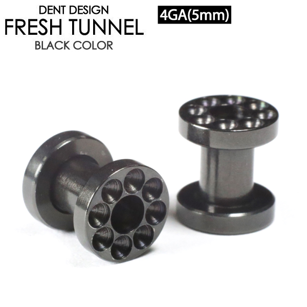 【メール便対応】フレッシュトンネル ブラック 凹仕様 4G(5mm) サージカルステンレス316L BLACK 黒色 デザイン ボディーピアス アイレット イヤーレット イヤーロブ 4ゲージ┃