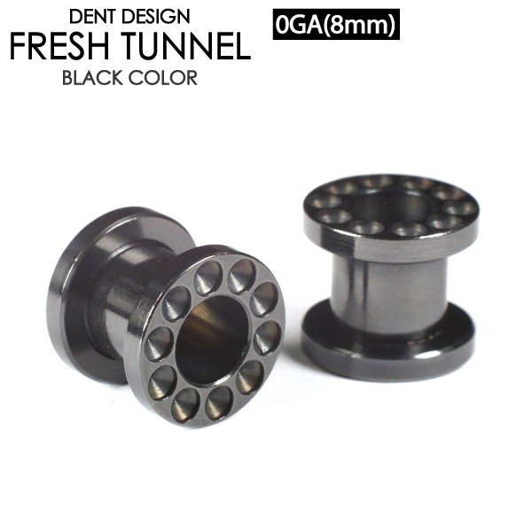 【メール便対応】フレッシュトンネル ブラック 凹仕様 0G(8mm) サージカルステンレス316L BLACK 黒色 デザイン ボディーピアス アイレット イヤーレット イヤーロブ 0ゲージ┃