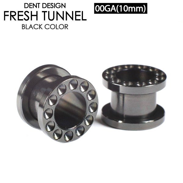 【メール便対応】フレッシュトンネル ブラック 凹仕様 00G(10mm) サージカルステンレス316L BLACK 黒色 デザイン ボディーピアス アイレット イヤーレット イヤーロブ 00ゲージ┃