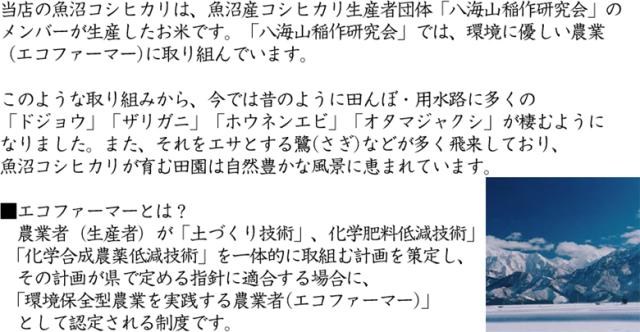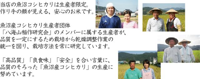 霊峰八海山を望む圃場で作られた当店の魚沼産コシヒカリは、有機質を含む肥料を主体に使用し