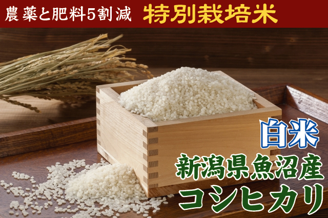 新潟県魚沼地域の地域慣行栽培に対して節減対象農薬・化学肥料の使用を抑えて栽培された、生産者のわかるお米です。