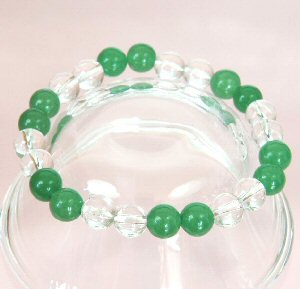 【メール便対応】【開運】天然石ブレス ジェイド(ヒスイ)*水晶 8mm玉 MIX2*2 ブレスレット 数珠ブレス【翡翠*クリスタルクォーツ数珠 8ミリ パワーストーン 】 ┃