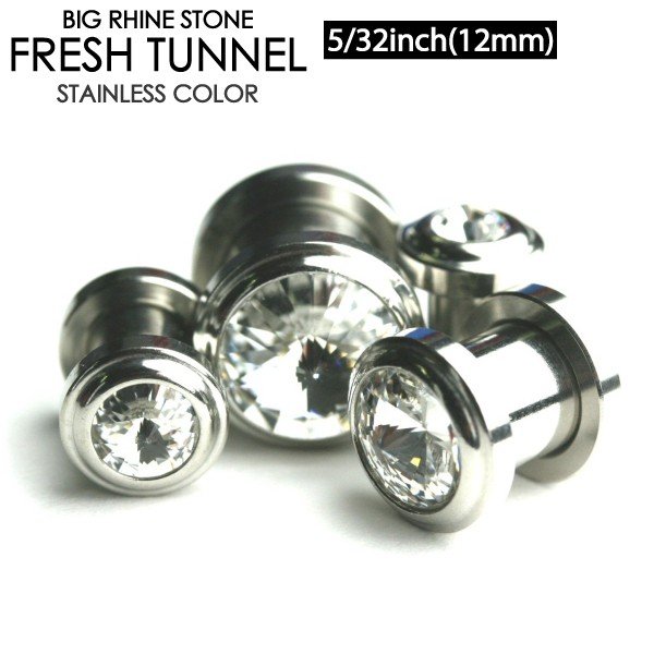 メール便 送料無料 フレッシュトンネル BIGラインストーン 5/32inch(12mm) サージカルステンレス316L【ボディピアス ジュエル付 ロブ アイレット イヤーレット】 12ミリ┃