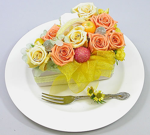 プリザーブドフラワー オレンジショートケーキ 送料無料 花 アレンジメント プレゼント ギフト 贈り物 フラワーギフト 誕生日 結婚記念日 お見舞い お祝い お礼 結婚