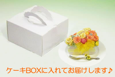ケーキ皿とフォークをセットにして、ケーキボックスに入れてお届けいたします。
