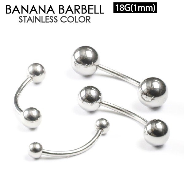 【メール便対応】バナナ バーベル 18G(1mm) サージカルステンレス316L アイブロウ カーブドバーベル 眉ピ 定番 ボディピアス シンプル バナナベーベル 医療用ステンレス┃
