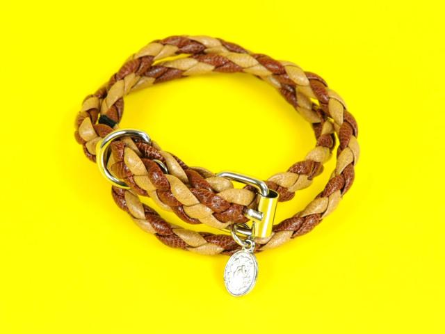 【メール便対応】レザーブレスレット 編込み2重巻き チャーム付き アクセサリー【重ね巻き革ブレスレット】00007 ┃
