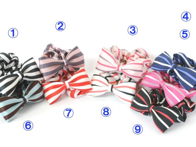 【メール便対応】ストライプ リボン シュシュ ヘアアクセサリー【おしゃれ 可愛いレディース】002 ┃