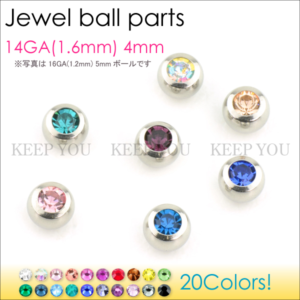 【メール便対応】ジュエルボール パーツ 14G(1.6mm)4mm玉 ボディーピアス カラーストーン 4ミリ カラー ジュエル カスタム 替玉 スペア ハンドメイド用 付け替え 14ゲージ(1.6ミリ)┃