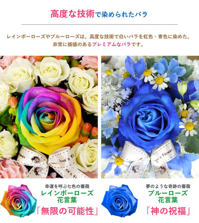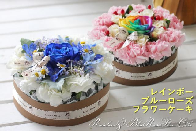 花 レインボーローズ ブルーローズ フラワーケーキ プレミアム 送料無料 翌日配送 虹色 青色 バラ サプライズ 花 生花 アレンジメント プレゼント ギフト 贈り物 誕生日 お祝い