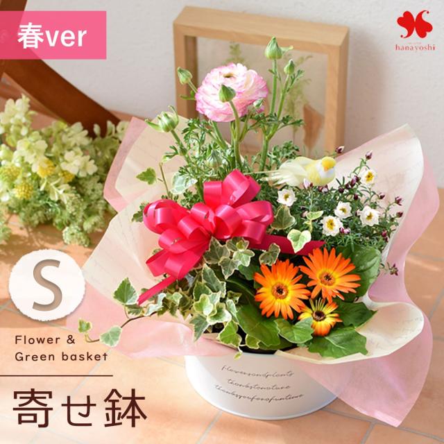 最短1/14届〜 季節のおまかせ 花鉢 と グリーン の 寄せ入れ Sサイズ フラワーバスケット 鉢花 鉢植 鉢植え 植物 ギフト おしゃれ 花 誕生日 お誕生日 プレゼント 女性 母 祖母 結婚祝い 結婚記念日 退職祝い 開店祝い お歳暮 冬ギフト フラワーギフト お正月 庭 玄関