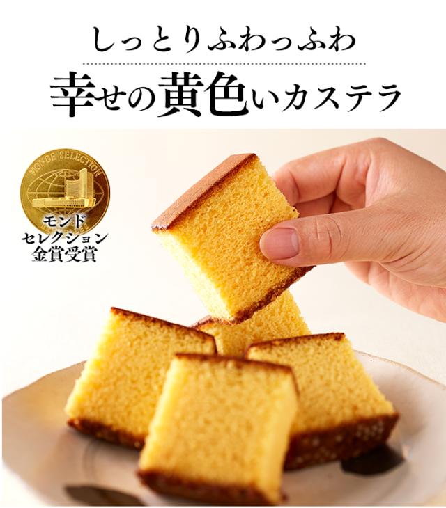 [幸せの黄色いカステラ]鶏卵(国産)、砂糖、小麦粉、水飴、ザラメ糖、蜂蜜、(一部に卵・小麦を含む)
