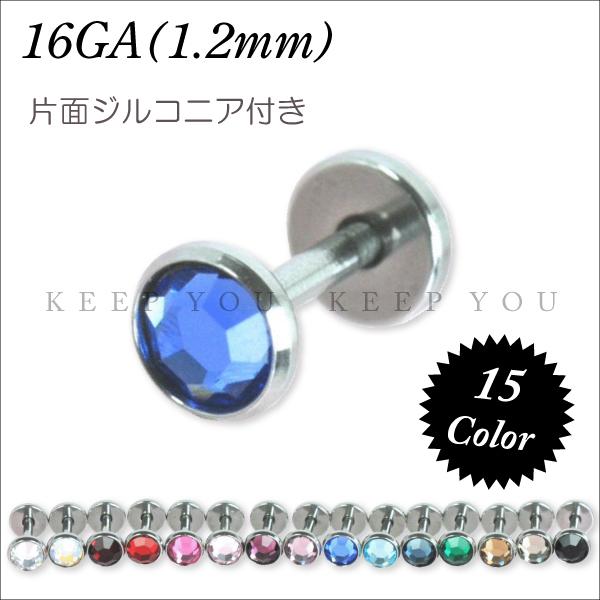 ボディピアス バーベル片側CZ 16GA(1.2mm)