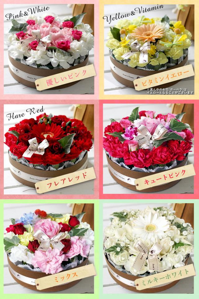 ■花材:バラ、カーネーション、ガーベラなどケーキの色により異なります