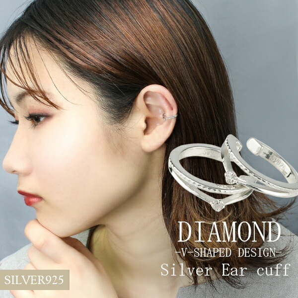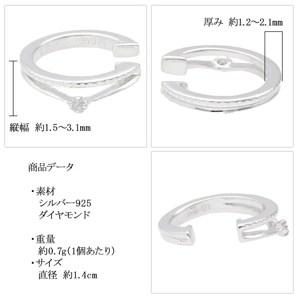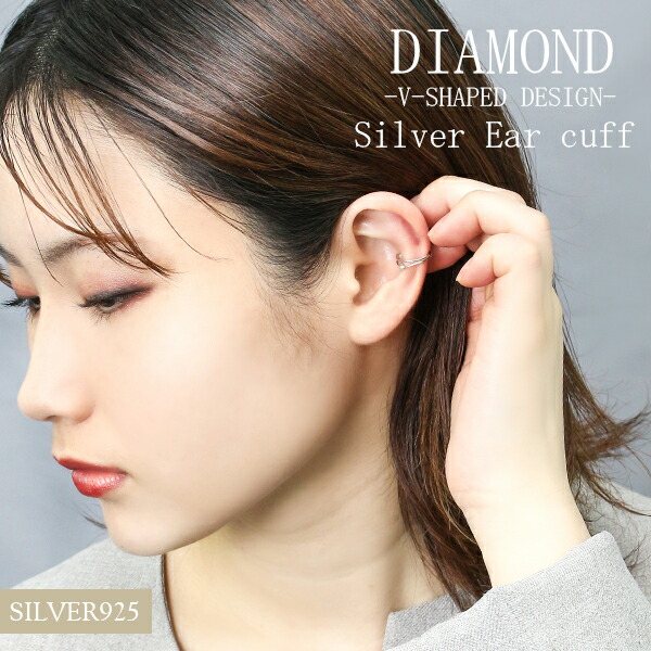 イヤーカフ イヤーカフス メンズ レディース シルバー シルバー925 ノンホールピアス シンプル 天然ダイヤモンド【新宿 銀の蔵】