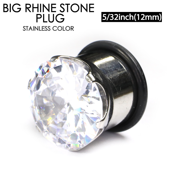 メール便 送料無料 ボディピアス プラグ BIGラインストーン 5/32inch(12mm) サージカルステンレス316L(医療用)【プラグ イヤーロブ キラキラ ジュエル】12ミリ ┃