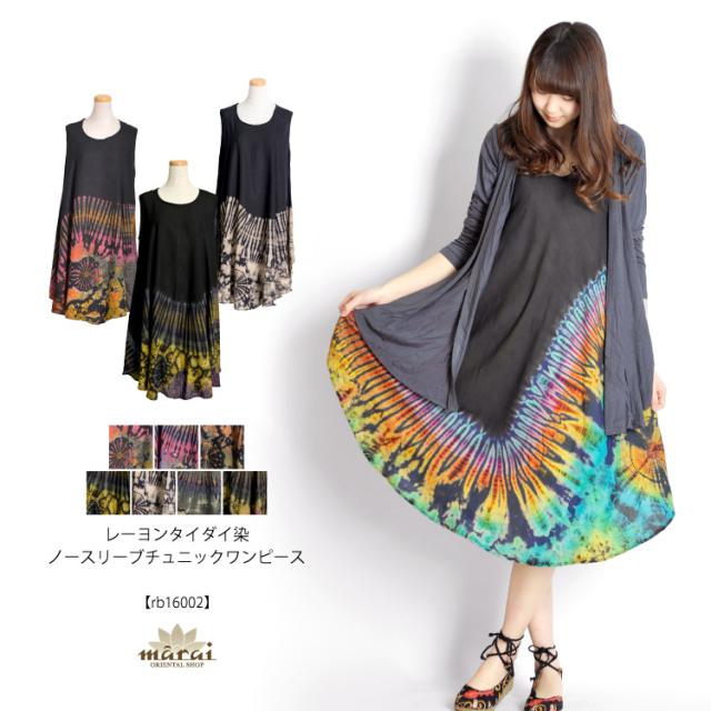 ワンピース チュニック チュニックワンピ ワンピ ミディアム丈 ノースリーブ 袖なし タイダイ染 rb16002 タイダイ レディース フリーサイズ サイズフリー 春夏秋 7タイプ ブラック S/M/L/LL 春服