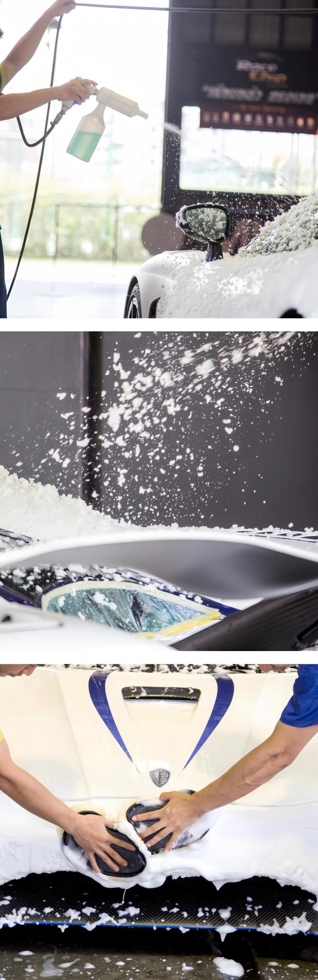 きめ細かな泡が車体を包み込み、洗車中の乾燥を遅らせます。