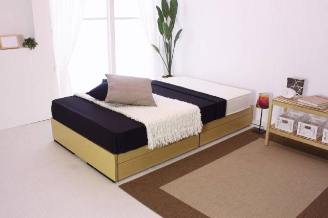 在庫処分の大幅値引き!本数限り! 木製ヘッドレス引出付ベッド マット付 シングル ヘッドレスベッド 小スペース 組立簡単
