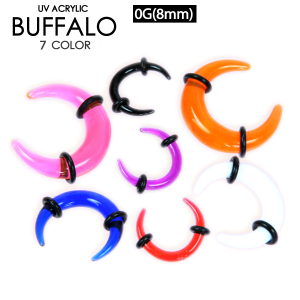 【メール便対応】UVアクリル バッファロー 0G(8mm) 両側をゴムで固定 ボディピアス ボディーピアス カラフル カラー 0ゲージ(8ミリ) イヤーロブ ┃