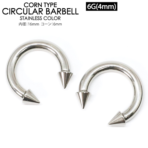 【メール便対応】サーキュラーバーベル コーンスパイク6G(4mm) サージカルステンレス316L 定番 ボディピアス ボディーピアス 6ゲージ【軟骨ピアス トラガス イヤーロブ ヘリックス リップ タンリム ロブ】 ┃