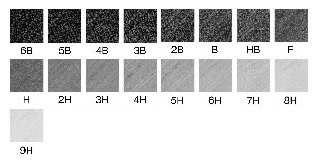 高度7段階:9H 8H 7H 6H 5H 4H 3H 2H H F HB B 2B 3B 4B 5B 6B