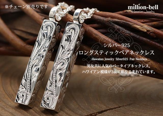 ハワイアンジュエリー シルバー ペアペンダントトップ 2個セット 刻印 無料 誕生石入れ可 ロングバー・スクロール模様が丁寧に彫刻 シルバー925 ネックレス チェーン別売 ペンダントヘッド カップル 夫婦 プレゼント 母の日 【品番:SP2956P】