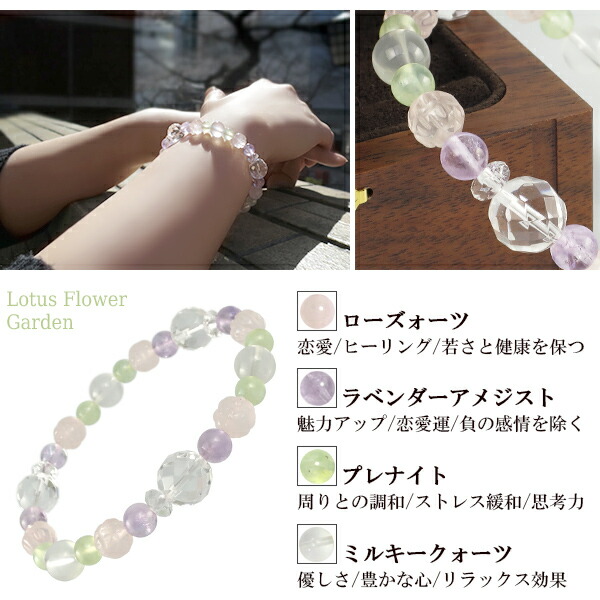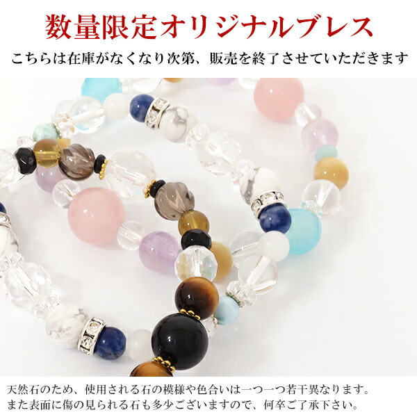 専属スタッフが一つ一つ手作り。様々な天然石の組み合わせによるデザイン性にこだわったブレスレットです。