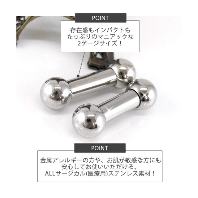 ボディピアス 拡張派必見 ストレートバーベル 2G 舌ピアス