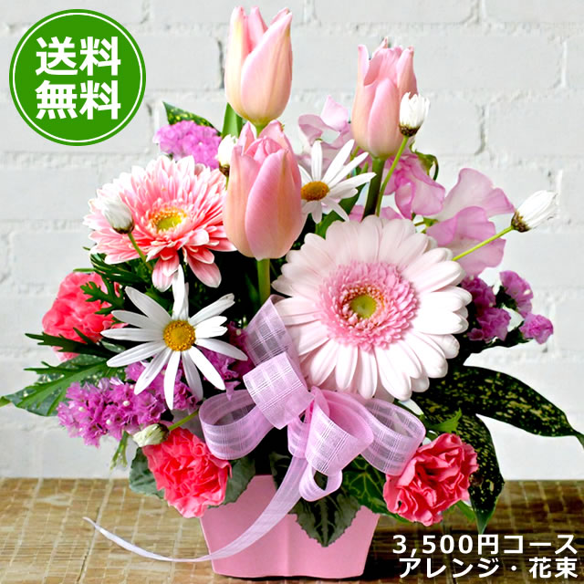 花 フラワーギフト チューリップ フラワーアレンジメント ブーケ デザイナーオーダー3500円コース 送料無料 翌日配送 花 生花 花束 プレゼント ギフト 贈り物 誕生日 お見舞い お祝い