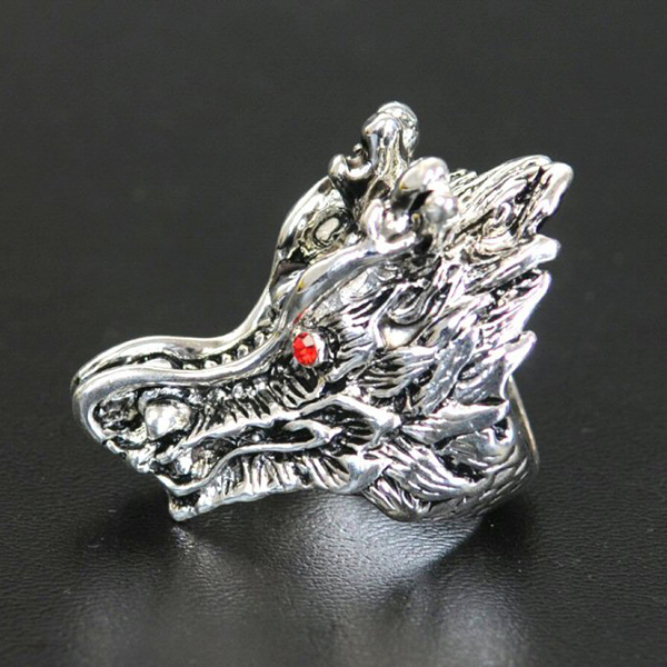 【メール便対応】ワイルド ドラゴン(龍)シルバーカラー 眼にはジルコニア付 ヘビメタ パンクロック メタルリング RING-M00010 ┃