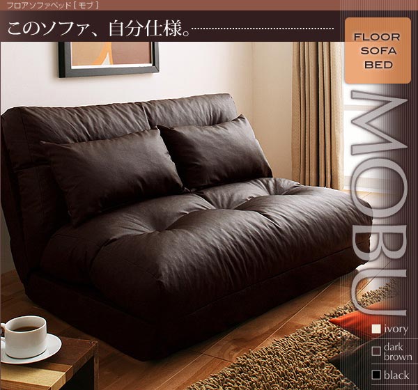 送料無料/フロアソファベッド・モブ合皮/ブラウン・ブラック・アイボリー