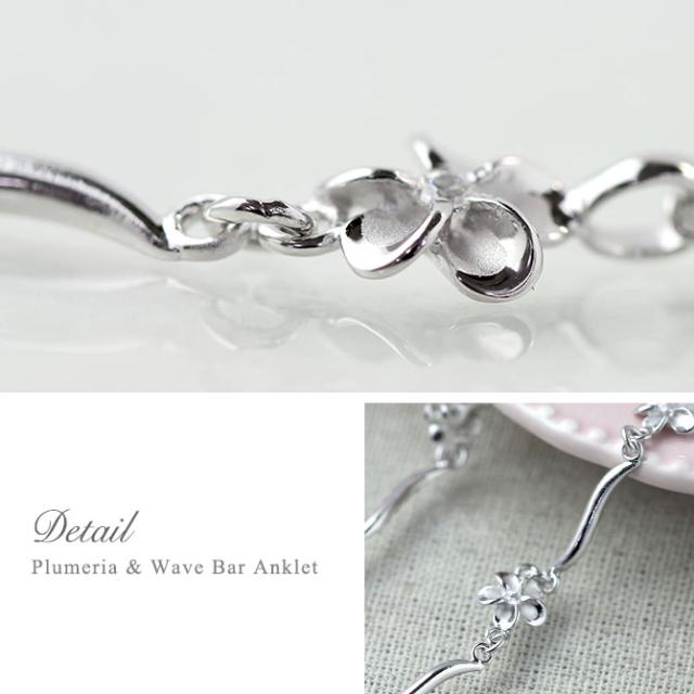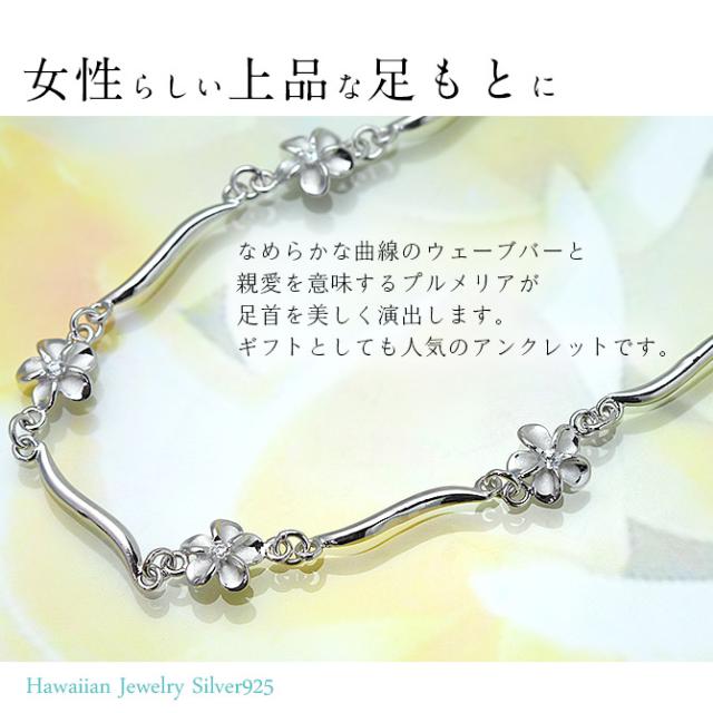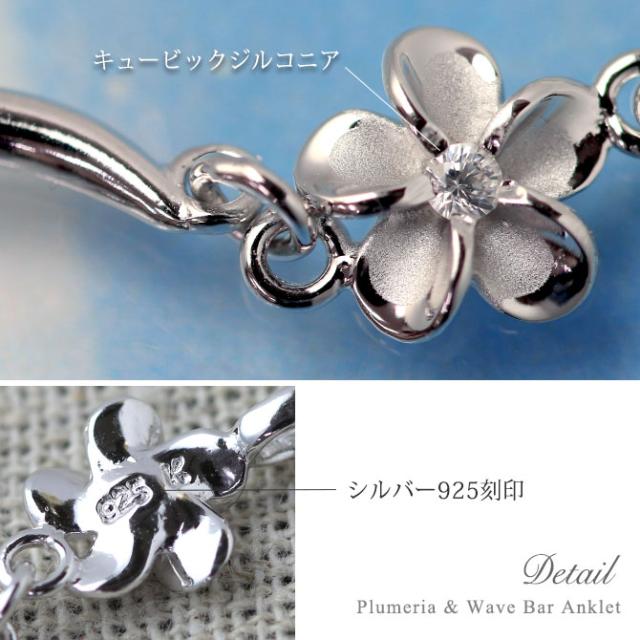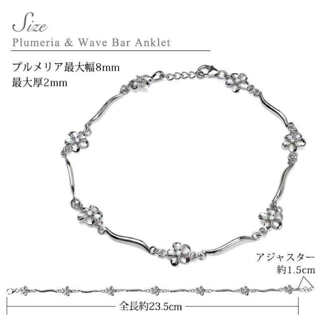 ハワイアンジュエリー アンクレット WAVEバー 花 プルメリア 長さ調節可能 シルバー925 ロジウムコーティング ジルコニア パーツ アジャスター 彼女 妻 女性 レディース 誕生日 プレゼント ホワイトデー 卒業式 入学式 【品番:SAK3448】
